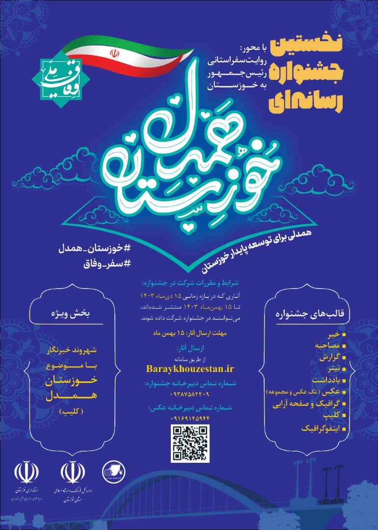 باهدف ارجنهادن به تلاشها و فعالیتهای اصحاب رسانه، جشنواره رسانهای «خوزستان همدل» با موضوع چالشها و ظرفیتهای خوزستان در مسیر توسعه پایدار به مناسبت سفر استانی رئیسجمهور و هیات دولت به خوزستان برگزار میشود.