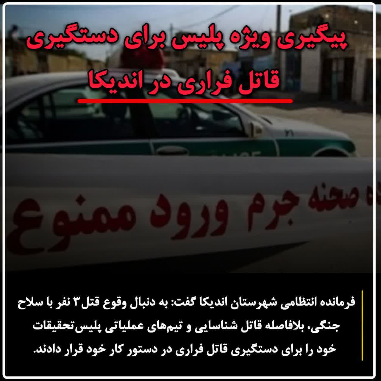 طبق گزارش پایگاه خبری انعکاس جنوب در پی حادثه قتل سه نفر از شهروندان اندیکا فرمانده انتظامی این شهرستان گفت: با ورود به موقع پلیس و انجام اقدامات تخصصی قاتل شناسایی و پیگیری های لازم در راستای دستگیری وی با هماهنگی قضایی در حال انجام است.سرهنگ سید بهمن سلیمانی پیانی با اعلام این خبر افزود: با عنایت به این که امنیت و آرامش با برنامه ریزی اعضای محترم شورای تامین، نیروی انتظامی، مشارکت عموم مردم و بزرگان و ریش سفیدان در منطقه برقرار است از مردم عزیز خواهشمندیم به اخبار کذب و شایعات توجه نکنند و اخبار موثق را تنها از طریق رسانه معتبر دنبال کنند.وی گفت: پس از حصول نتیجه اخبار تکمیلی اطلاع رسانی خواهد شد.