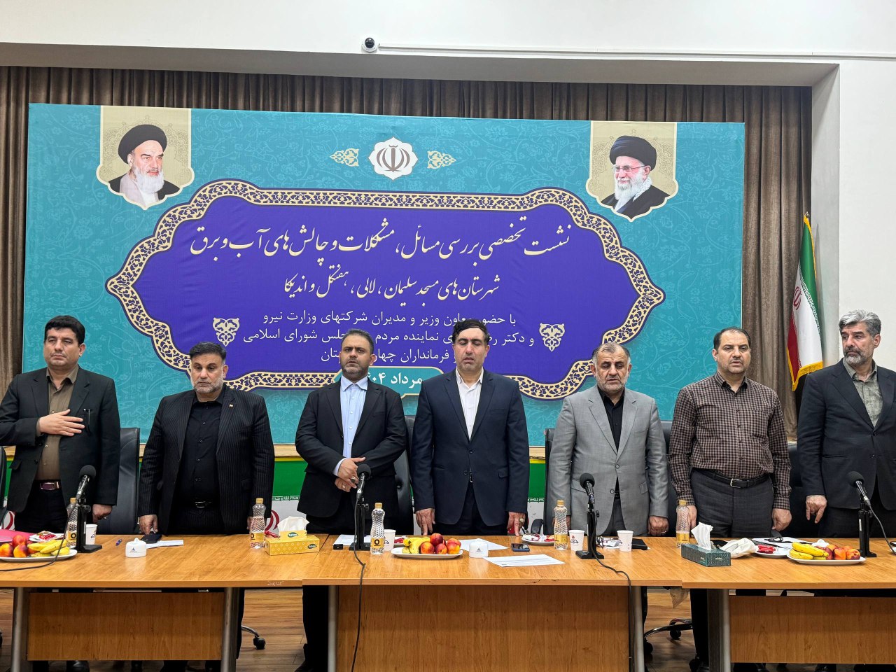 نشست تخصصی پیگیری و رفع چالش های آب و برق شهرستان های مسجدسلیمان، هفتکل لالی و اندیکا با حضور دکتر کردی معاون وزیر نیرو، دکتر رضا جباری نماینده مسجدسلیمان در مجلس شورای اسلامی، پیمان جهانگیری فرماندار، جمعی از مدیران کل استان خوزستان و فرمانداران شهرهای تابع در محل سالن جلسات باشگاه مرکزی مسجدسلیمان برگزار شد.
